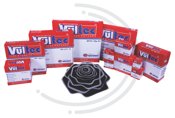 VULTEC OTR repair patches are used to repair a puncture, reinforced and section injuries in bias ply Off the Road tyre of heavy-duty machines (Construction, Earth Moving). OTR repair units are made up from strips of cords over-laid in an obscure-spaced design to form a square lattice providing a large platform area in a smaller patch. The units have die-cut edges reverberations the cord-end stresses get disturbed across a radius area avoiding lifting of the cord edges. We also manufacture patches for sidewalls reinforced and section injuries in joint tyres. This type of construction provides a small and flexible unit that can be applied parallel or perpendicular to the bead as dictated by the injury location. VULTEC OTR Repair patches can repair injuries up to 300 mm. and up to 52 ply rating off the standard tyres