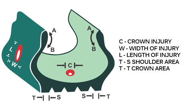 | INJURY | Inch | 1/8" | 3/8" | 1/2" | 1" | 2" | 3" | 4" | 5" |